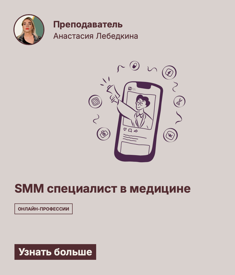 Курс «СММ специалист в медицине» — легендарный курс для амбициозных врачей, стремящихся монетизировать знания с помощью соцсетей.